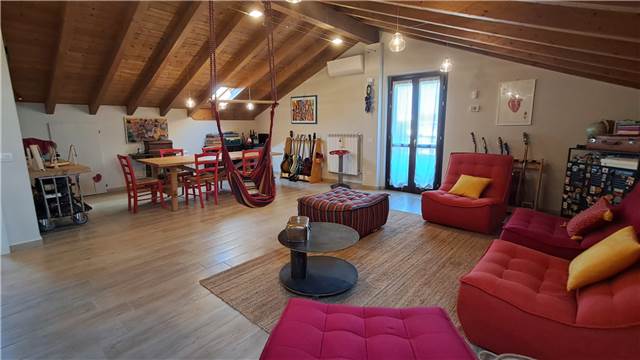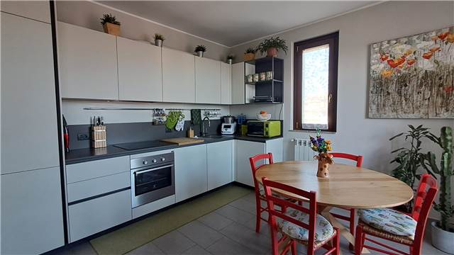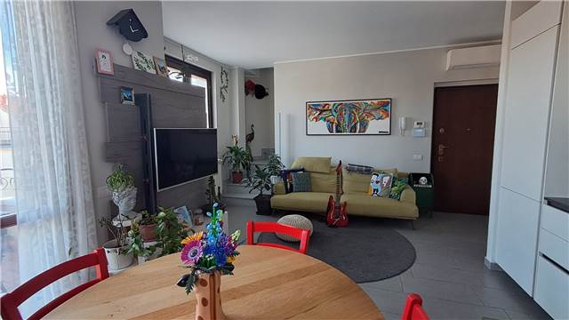 BUSTO GAROLFO in mini palazzina di recente costruzione con facciata esterna in mattoni a vista, tetto in legno lamellare a vista, di sole 4 unità disponiamo al primo piano di appartamento con mansarda così disposto: Mq. 69 al piano primo composto da soggiorno con cucina a vista, terrazzino, disimpegno, bagno, lavanderia e camera matrimoniale dotata di balcone. Scala interna per accesso alla mansarda mq 82 rifinita attualmente open space (altezza max 3 mt. e min. 1,50) mansarda predisposta per ricavare 2 vani . Ripostiglio sottotetto di mq 20. Impianto antifurto, condizionamento, serramenti in legno doppio vetro, persiane esterne in alluminio. Al piano Seminterrato ampia cantina di mq 12 con piccola finestra e box doppio in larghezza.